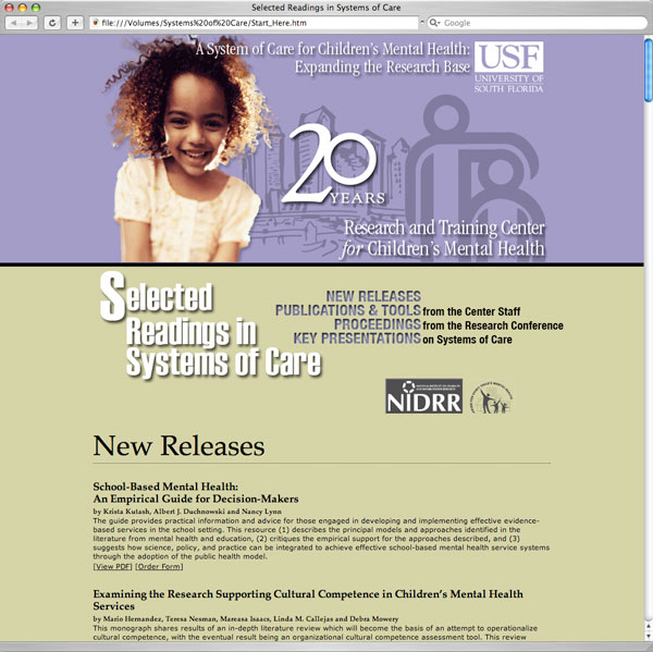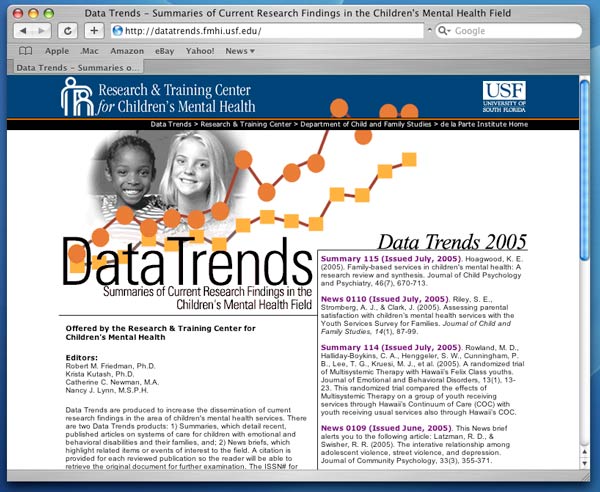 A publishing clearinghouse updated twice a month focused on issues in children's mental health.